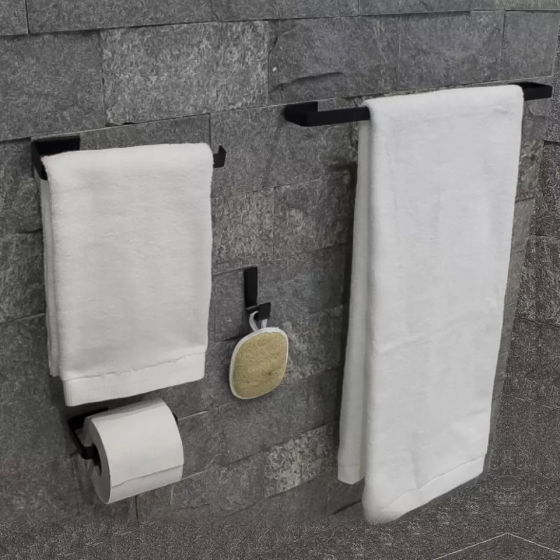 Kit Banheiro Quadra 215494 Preto Fosco - 05 Peças